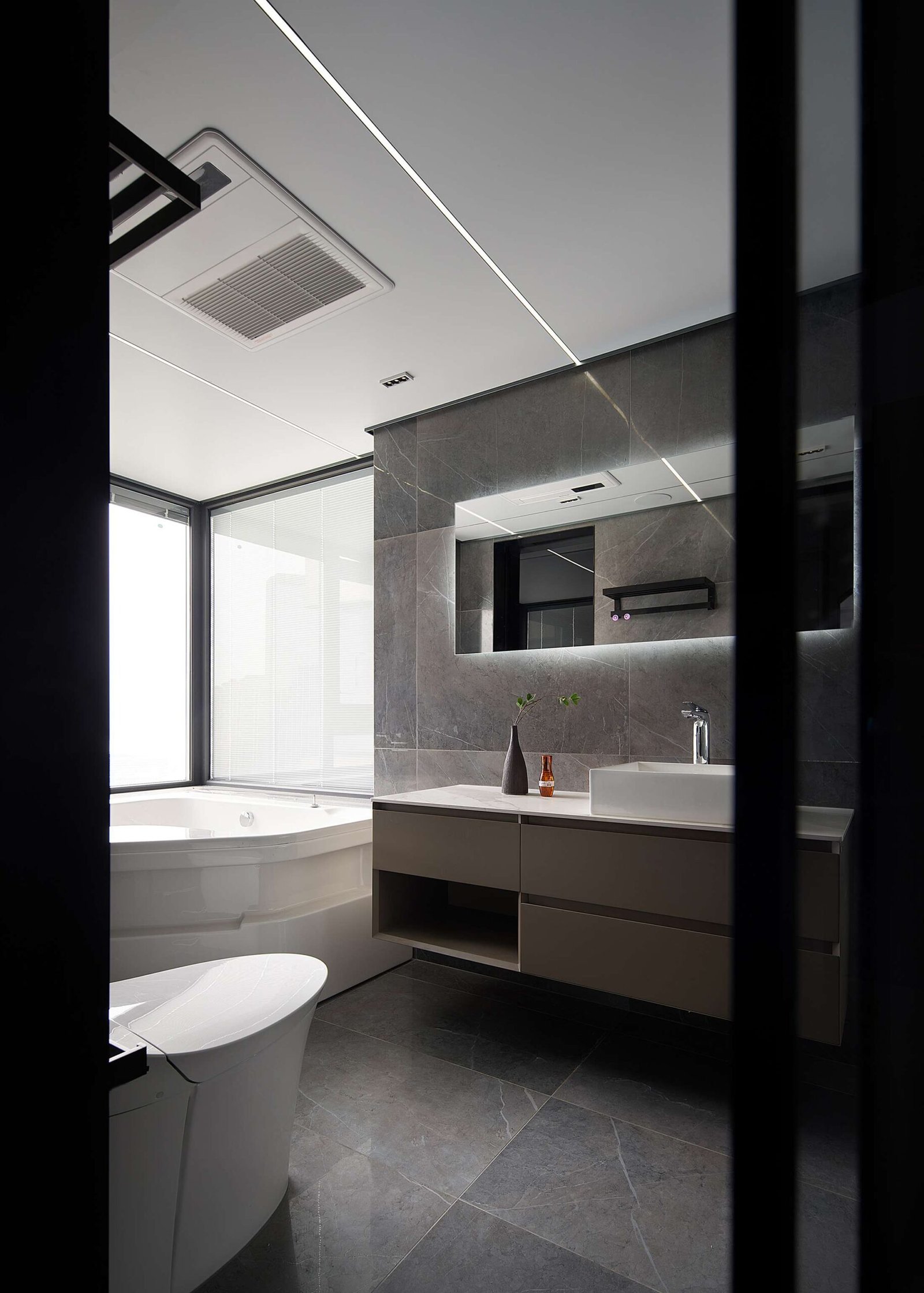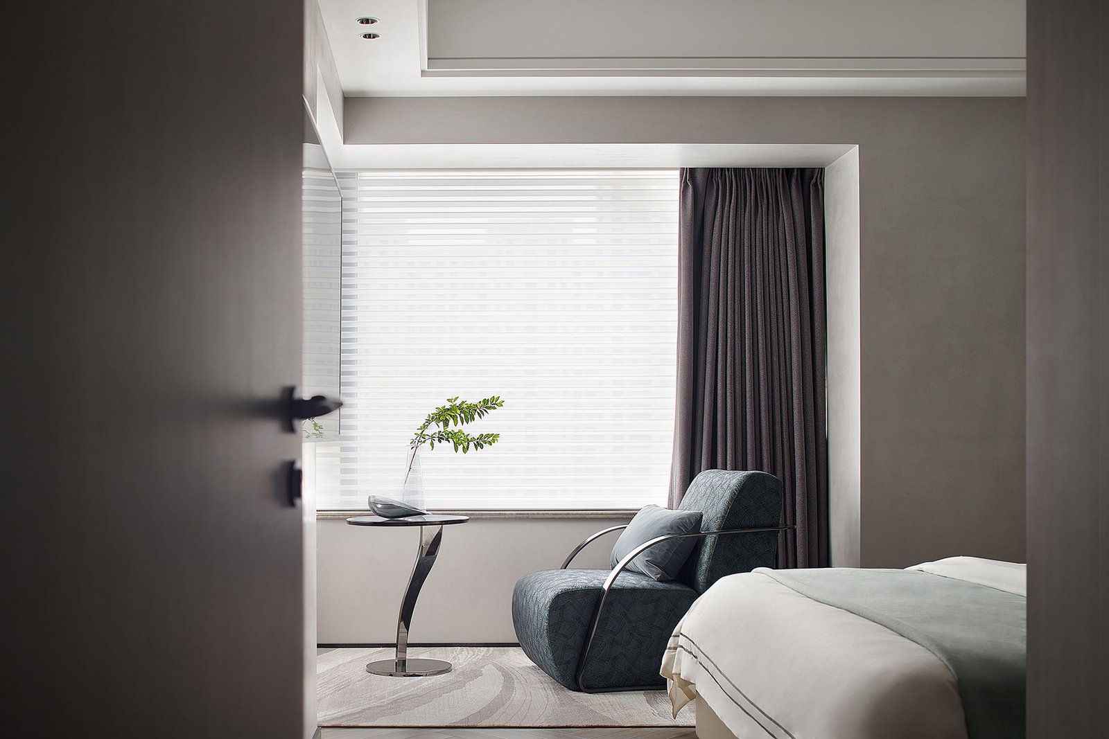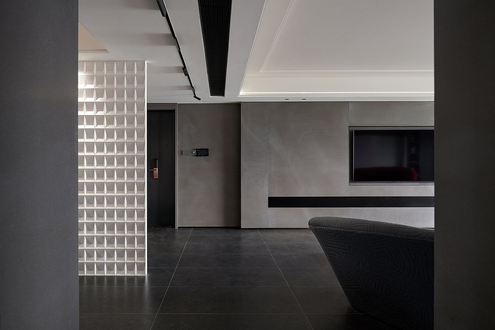 The gray slabs in the whole house are matched with stainless steel and blank space. The whole space is full of strong black, white and gray color contrasts, which is very modern and minimalist. The bold color matching of red and gray sofas catches your attention immediately. The slightly indifferent temperament is neutralized, and the space has a playful and soft background, which seems to record the hindsight and experience on the growth road, and is also the precipitation of years. The simple life in the world is plain and happy.